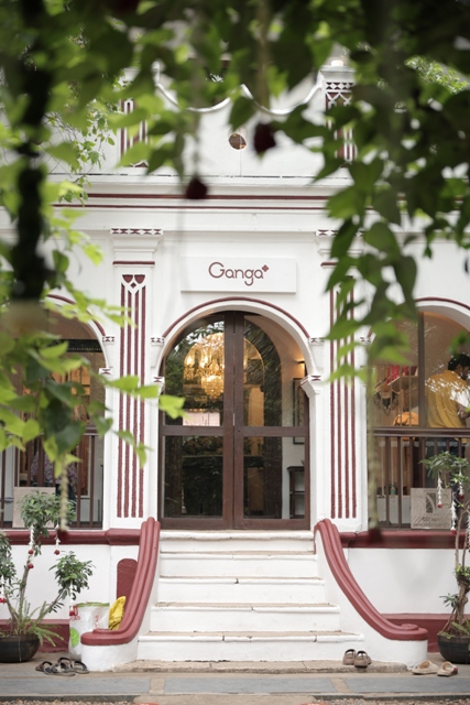 Spread across 2,000 sq. ft., the store captures the essence of Ganga, anchored in tradition yet contemporary in its expression. Conceived as more than just a retail destination, it offers an immersive space of discovery where design, culture, and nature come together in harmony. Surrounded by tranquil greenery and serene ponds, the layout unfolds like a narrative, inviting visitors to journey through moods and stories rather than simply browsing racks and aisles. Every detail, from lighting to material finishes, has been thoughtfully curated to embody Ganga’s philosophy of balance, refinement, and craftsmanship.